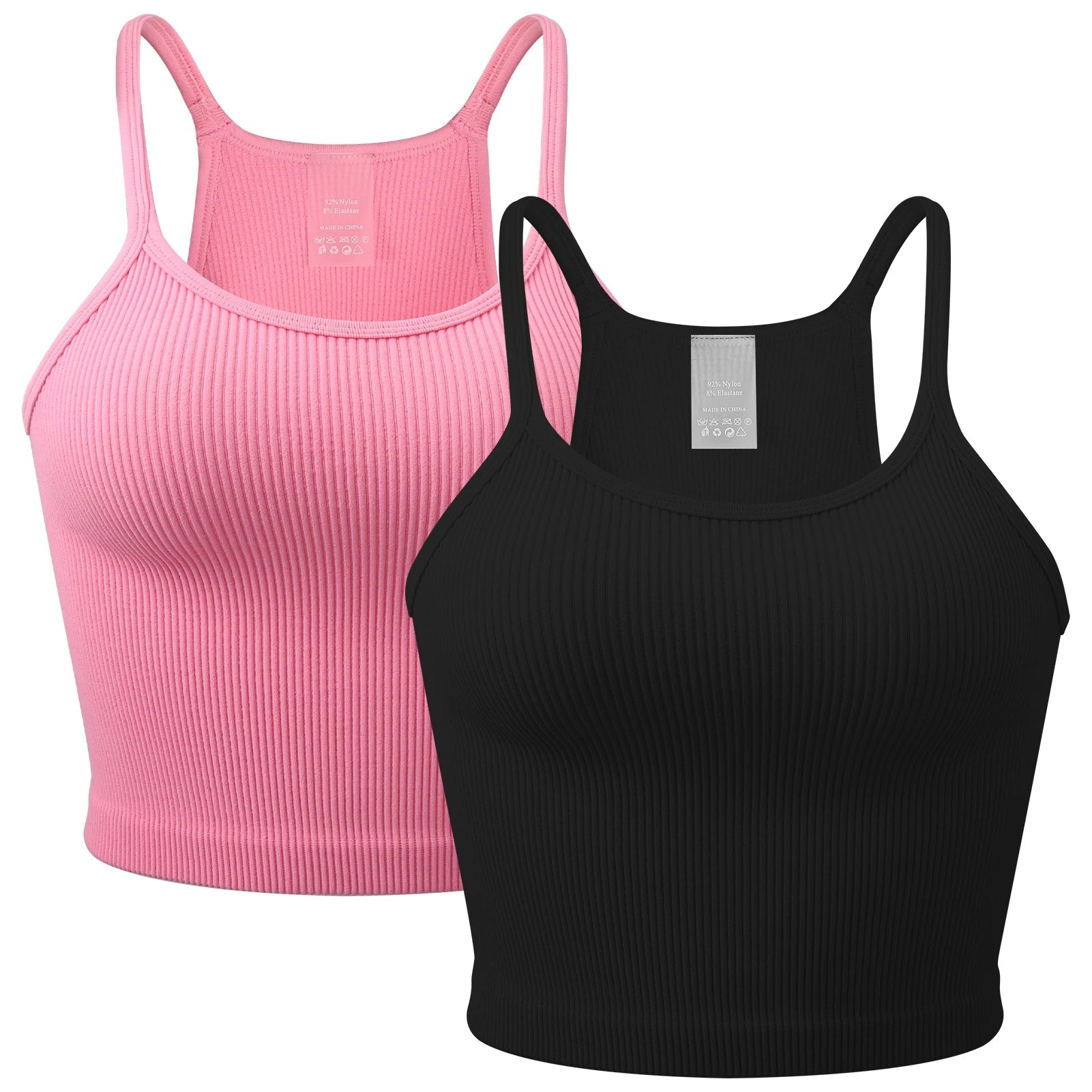 2 Pieces Women Tank Tops Sexy Going Out Sports Ribbed Summer Tops Crop Tops for Ladies Black Pink