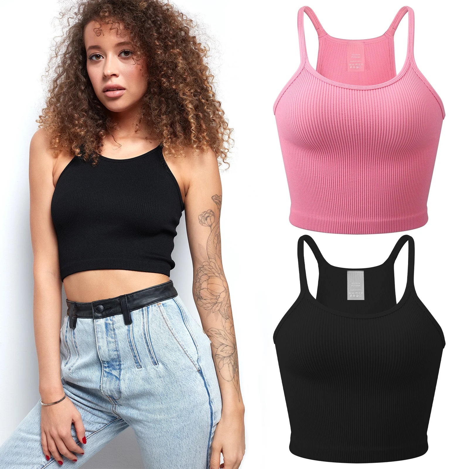 Elevate your summer wardrobe with the 2 Pieces Women Tank Tops Sexy Going Out Sports Ribbed Summer Tops Crop Tops for Ladies Black+Pink. Designed for versatility and comfort, these stylish crop tops are perfect for both casual outings and active days.