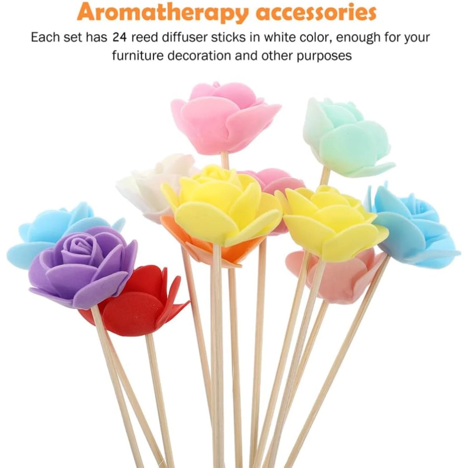 24pcs Flowers Fragrance Diffuser Essential Oil Decor Sticks