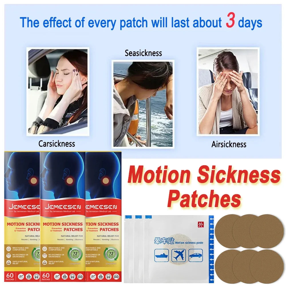 Experience comfort on your journeys with our 60pcs Motion Sickness Patches, designed for both kids and adults. These seasick patches are the perfect solution for anyone prone to motion sickness, whether during car rides, boat trips, or flights. With a convenient design, these anti-motion sickness plasters provide relief when you need it most.