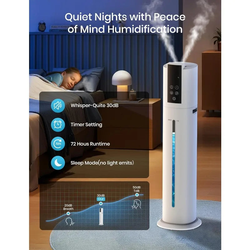 - Whisper-Quiet Operation: At less than 30dB, this humidifier ensures peaceful nights by turning off lights in sleep mode, perfect for bedrooms and nurseries.
