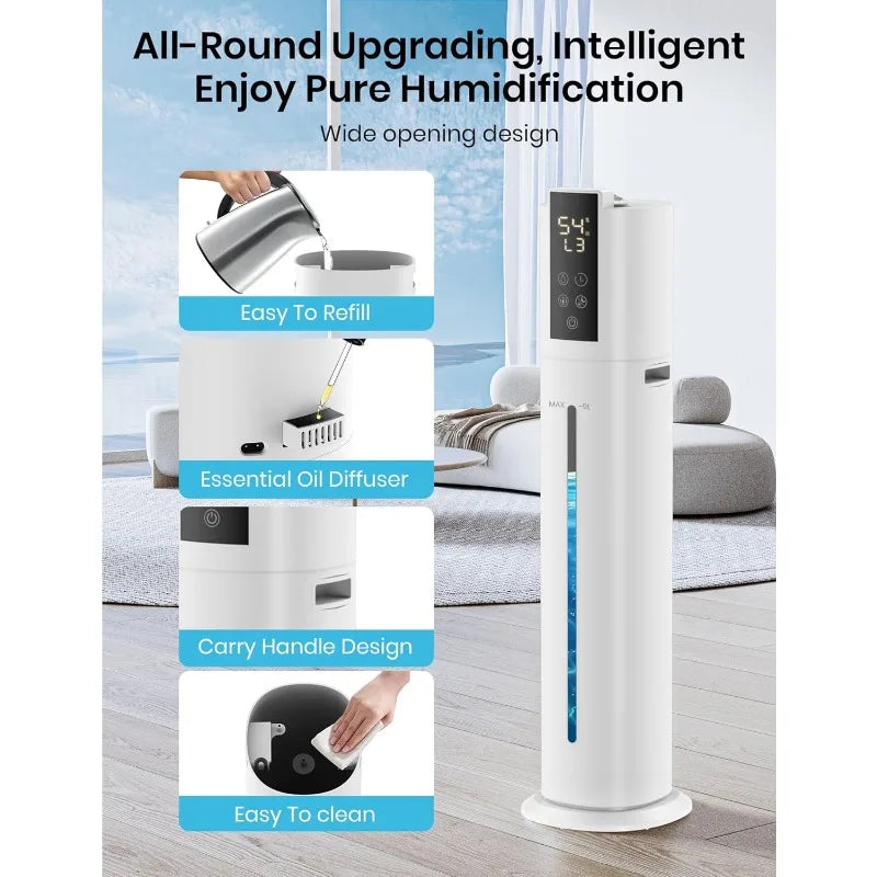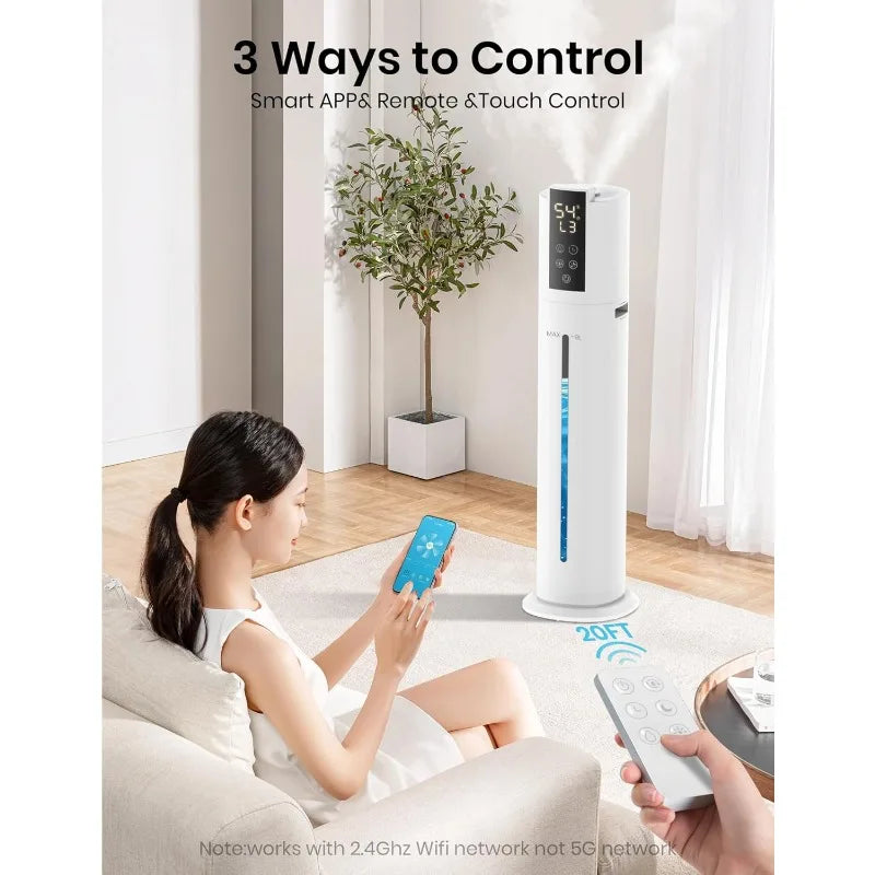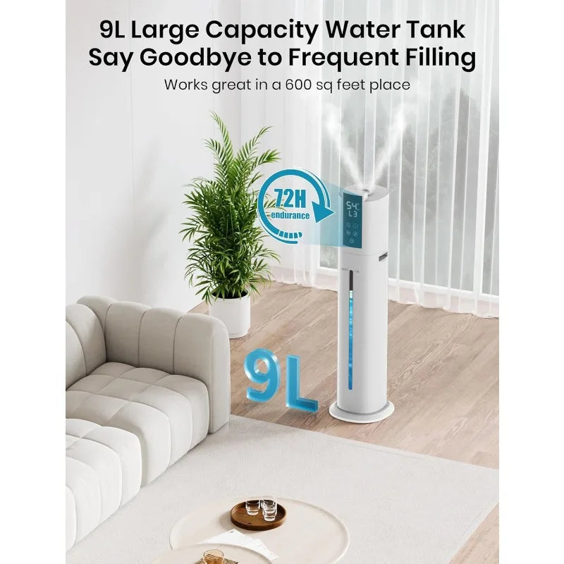 Transform your living space into a haven of comfort with the 9L/2.38Gal Smart Humidifier. Designed to enhance air quality, this 30dB Quiet Whole House Humidifier provides optimal humidity levels across areas up to 600 square feet. With a generous 9-liter detachable water tank, enjoy up to 72 hours of continuous operation without the hassle of frequent refills.