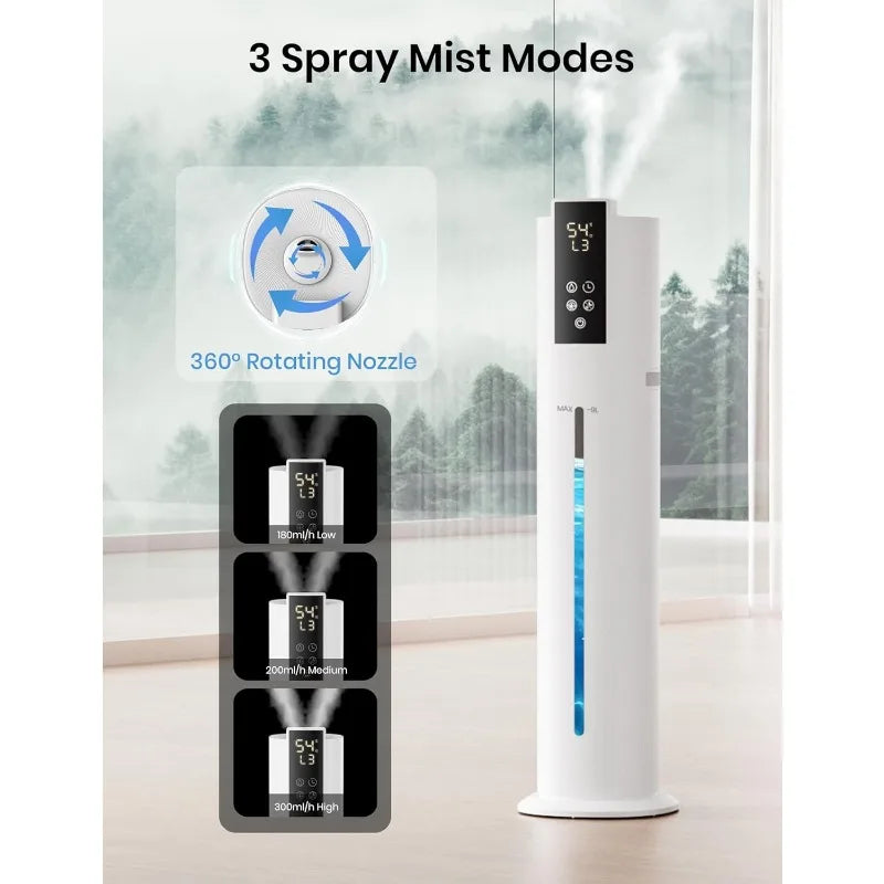- Customizable Mist Modes: Choose from 3 mist levels to suit your preferences, with a built-in humidistat that automatically adjusts to maintain your desired humidity range (30%-80%).