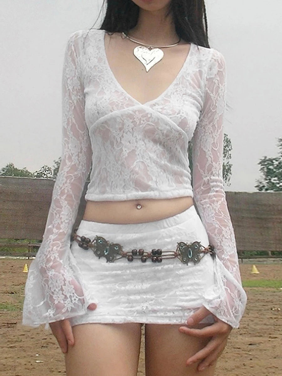 Elegant Lace Off-Shoulder Blouse Vintage Boho Top