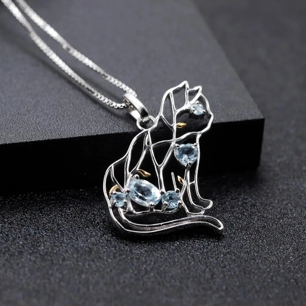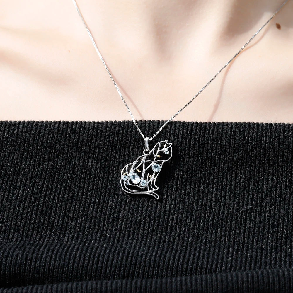 Don't miss out on owning this enchanting piece of jewelry. Order the GEM'S BALLET Cat Shape Natural Sky Blue Topaz Animal Jewelry Pendant Necklace today and showcase your love for elegance and feline charm!
