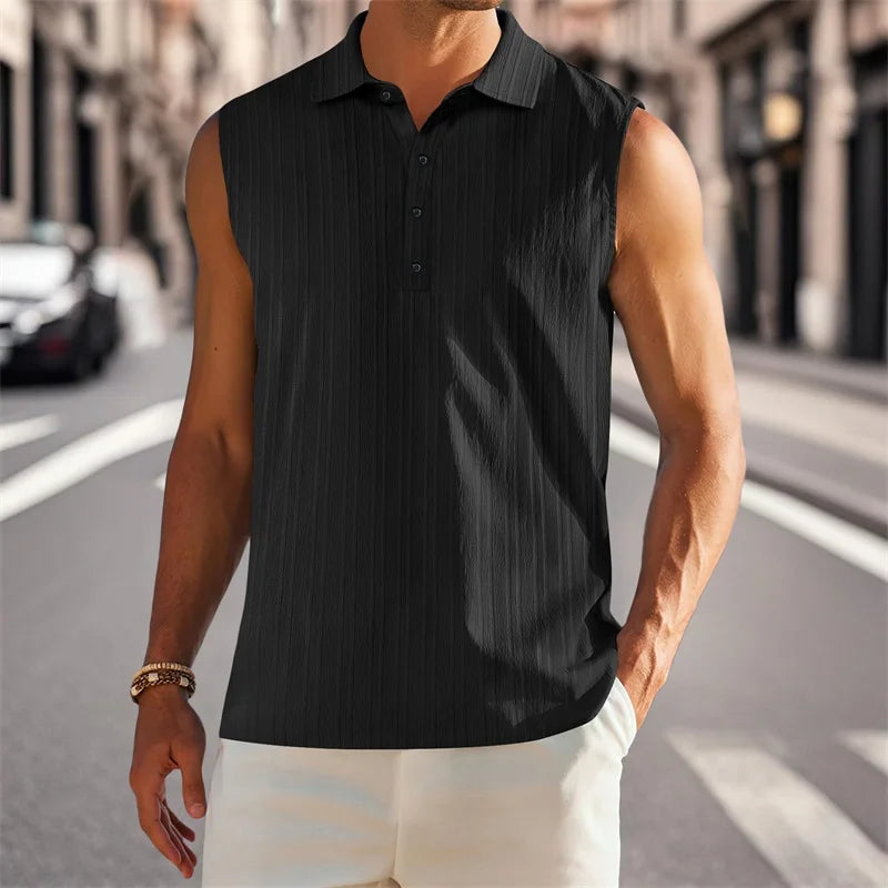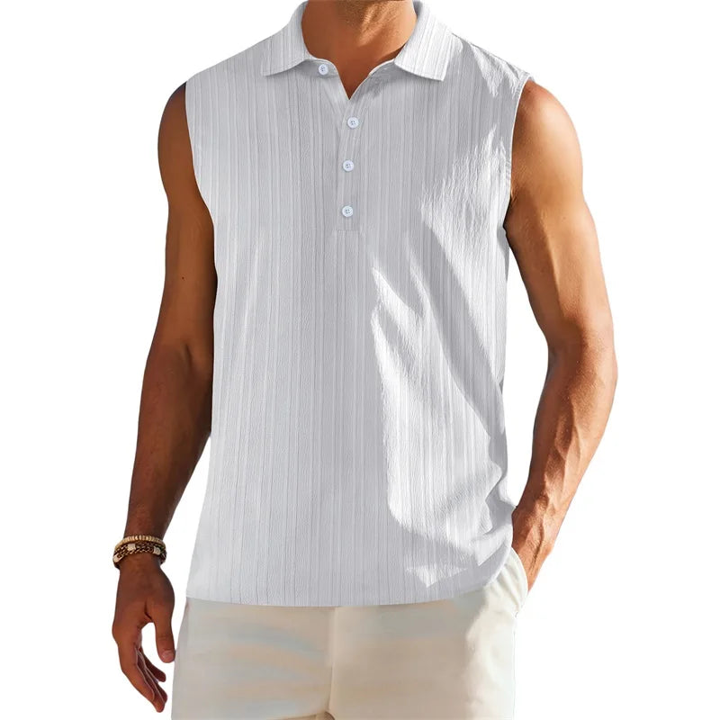 Men's Sleeveless Collared Tank Tops with Textured Stripes