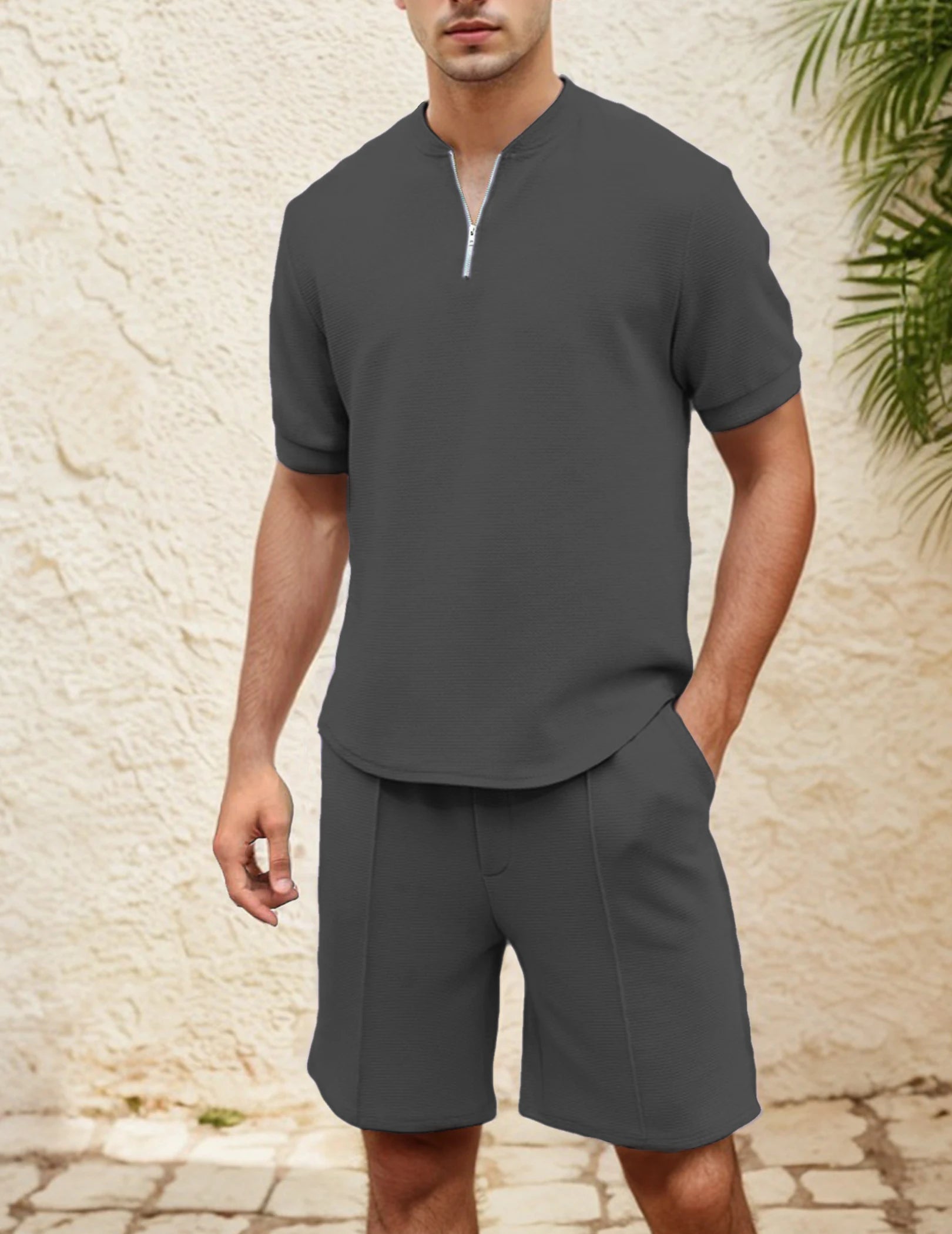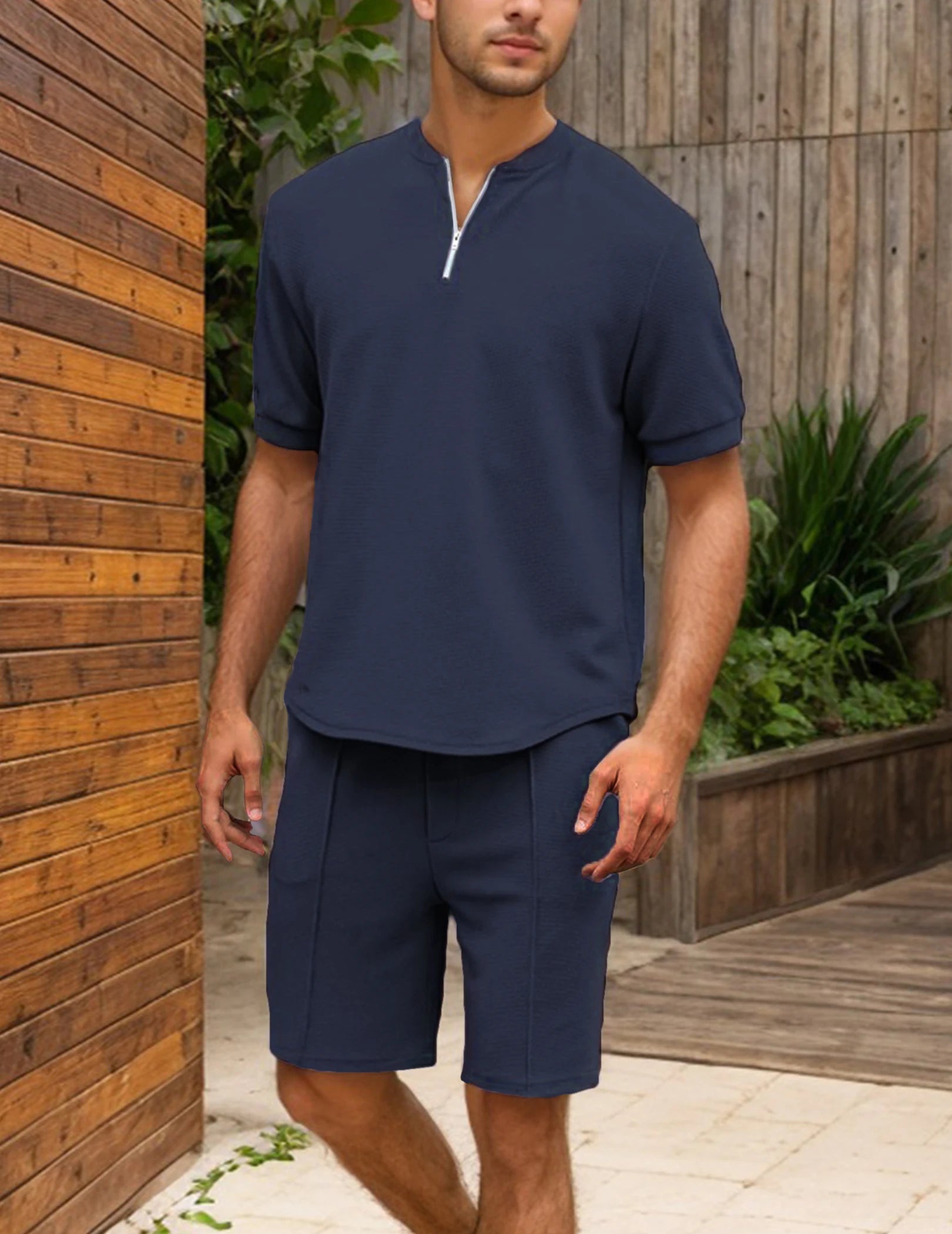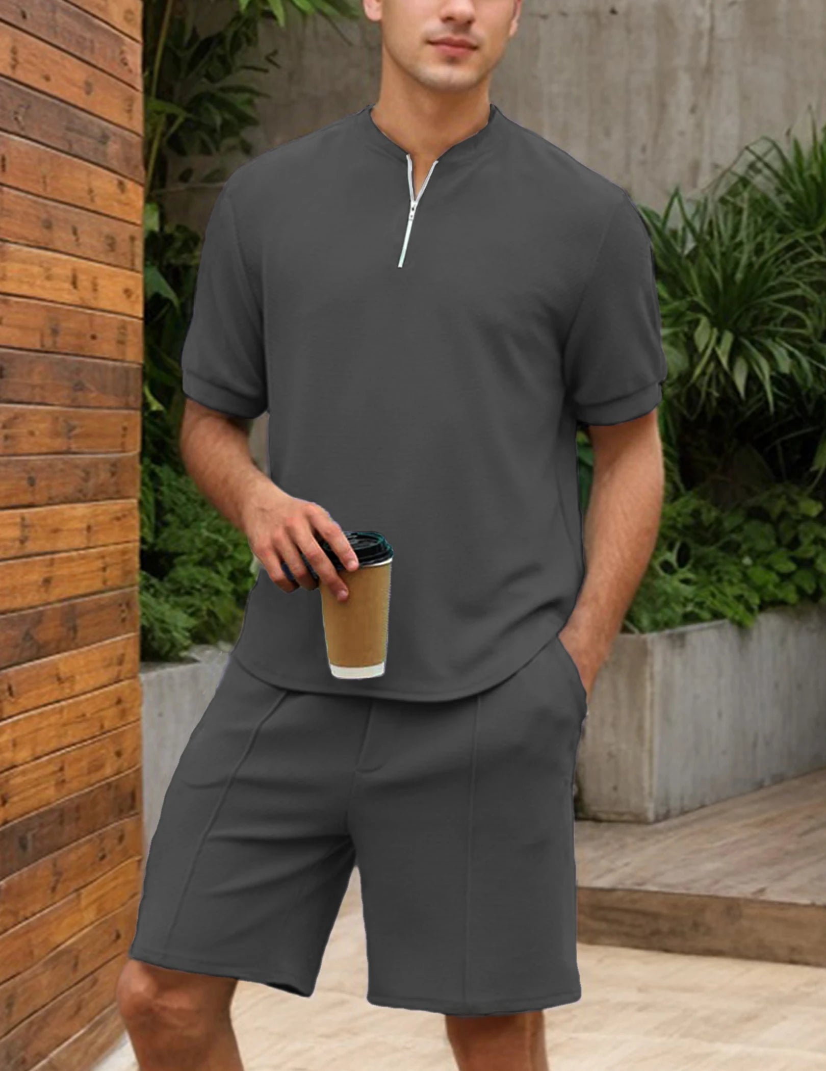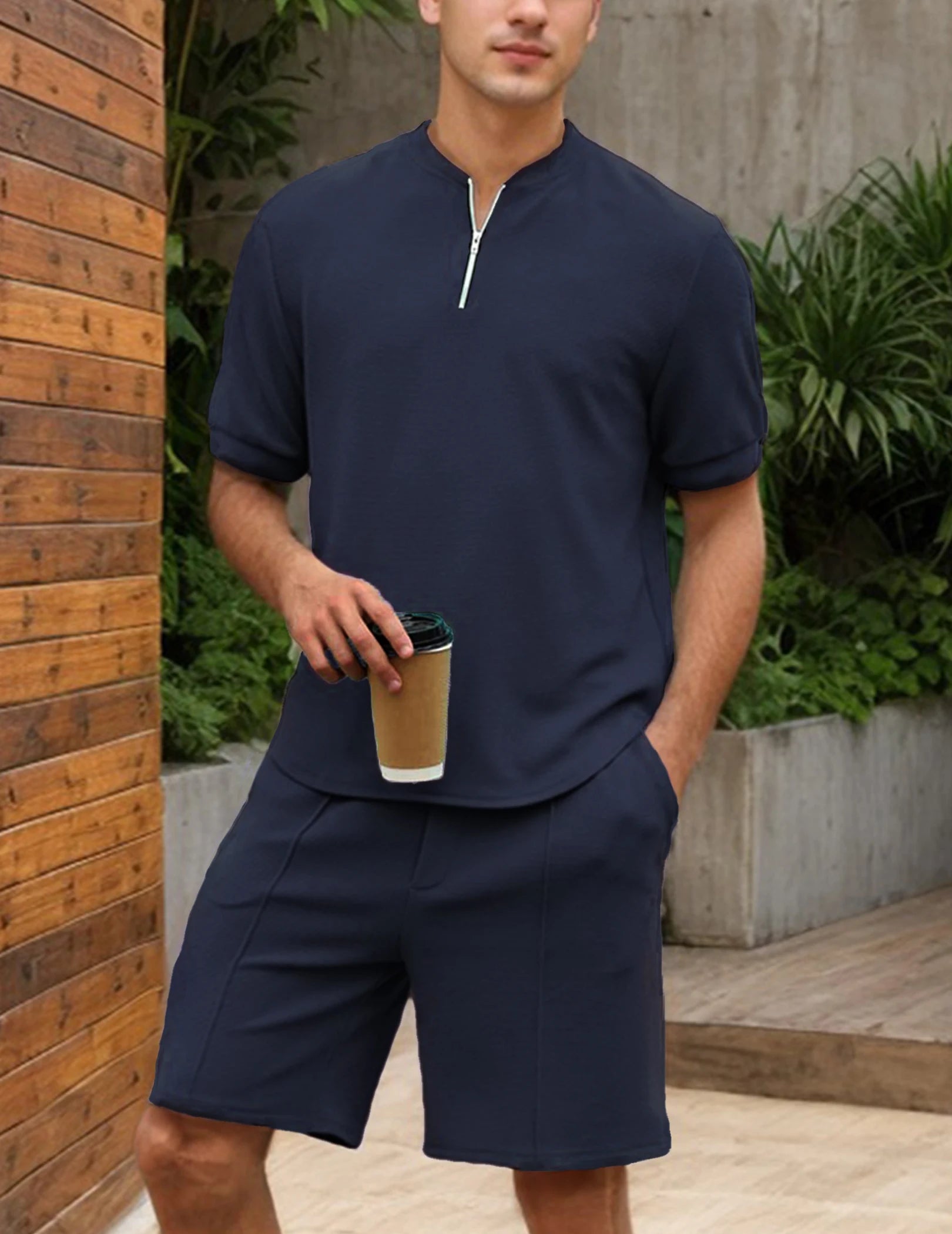 Elevate your casual wardrobe with our Men's Crew Neck Half-Zip Casual Two-Piece Set. Designed for both comfort and style, this set is perfect for sports activities or everyday wear. Made from high-quality polyester, it ensures a lightweight feel and breathable experience, making it ideal for the spring and summer seasons.