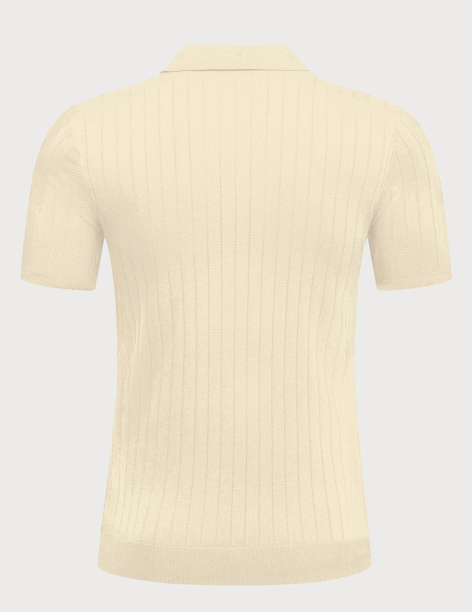 Perfect for any occasion, the Men's Polo Collar Short Sleeve Striped Knit Shirt is a must-have piece in every man's wardrobe. Don't miss out on this stylish casual top—add it to your cart today and redefine your casual wear!
