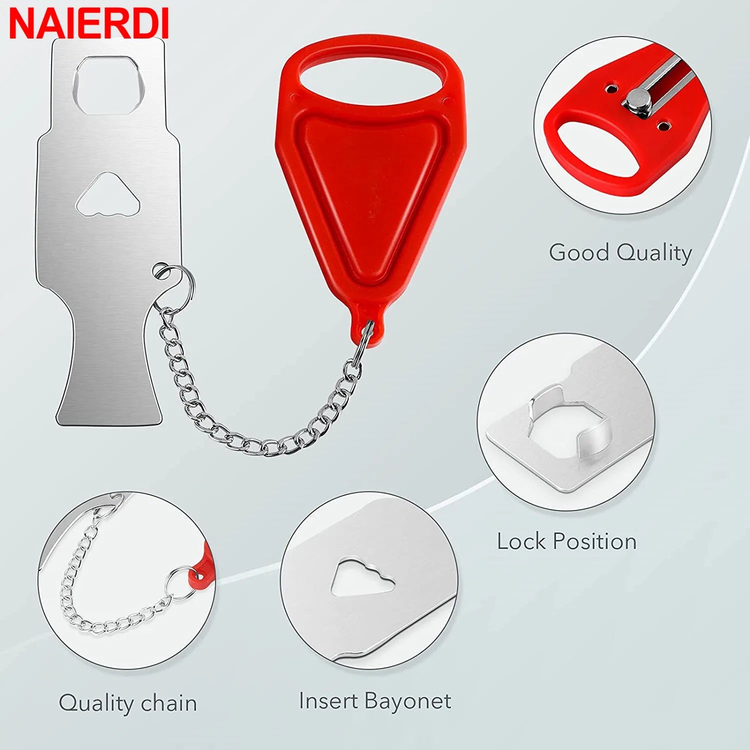 NAIERDI Portable Door Lock Safety Latch Metal Lock for Travel