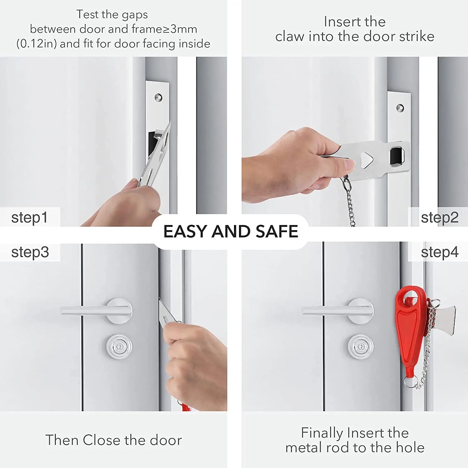 Enhance your security and peace of mind with the NAIERDI Portable Door Lock Safety Latch. This innovative metal lock is designed to deter theft and provide you with an extra layer of protection, whether at home, traveling, or staying in a hotel, dormitory, or Airbnb.