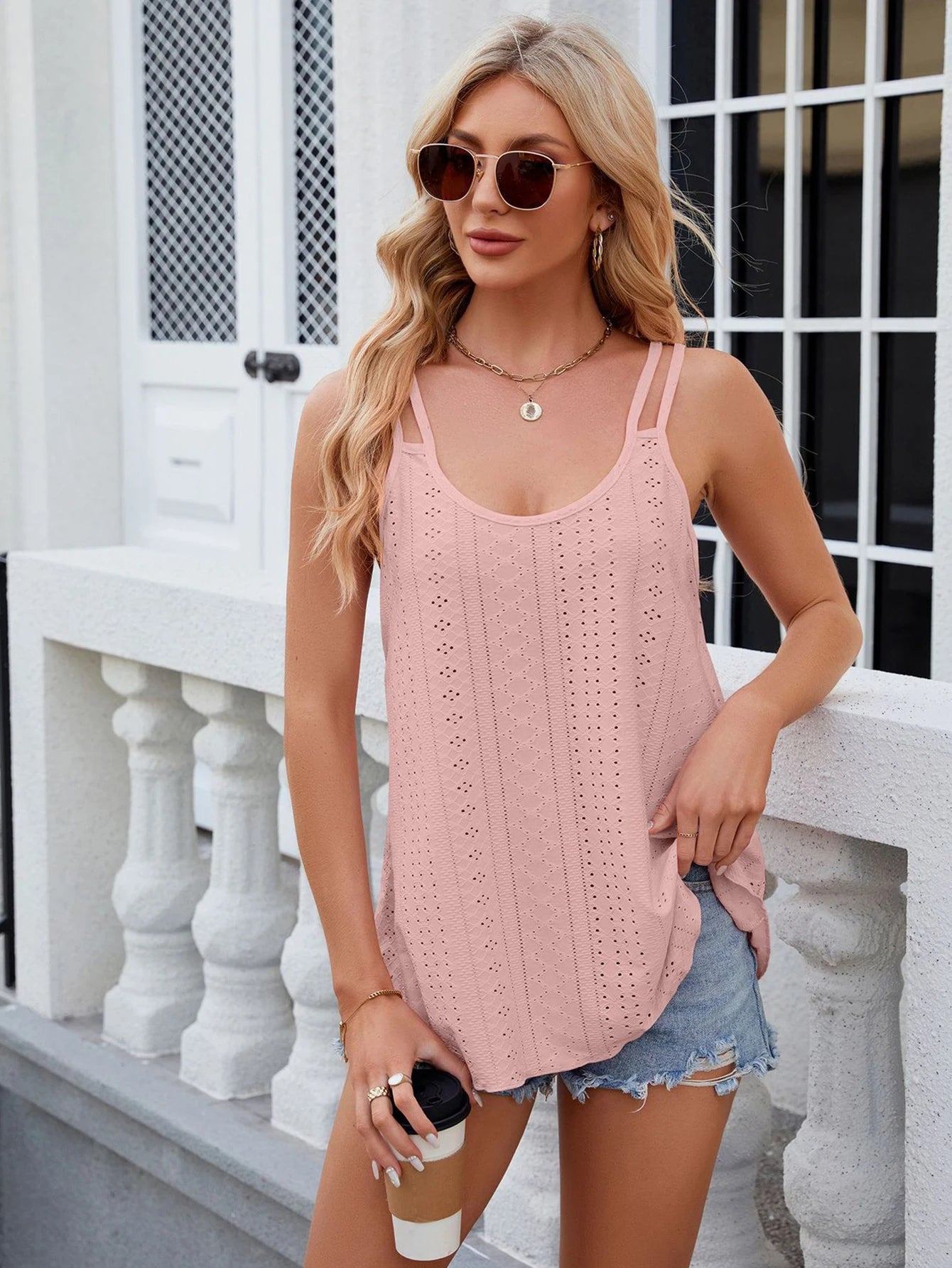 New Arrival For Summer 2025 Chic Eyelet Detail Cami Top
