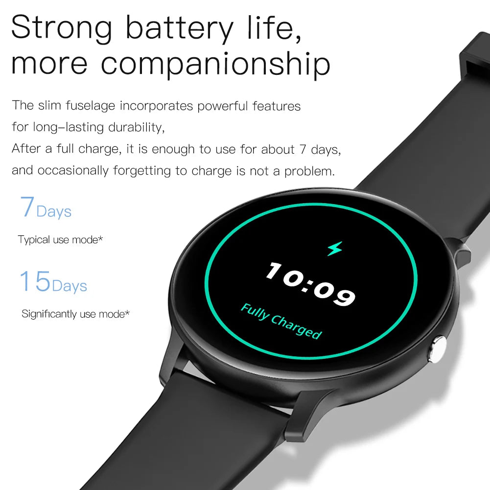 Powered by a robust 220-300mAh battery, enjoy up to 7 days of usage on a single charge. This watch is not just about fitness; it is a complete lifestyle companion that supports multiple languages including English, Spanish, French, and more.