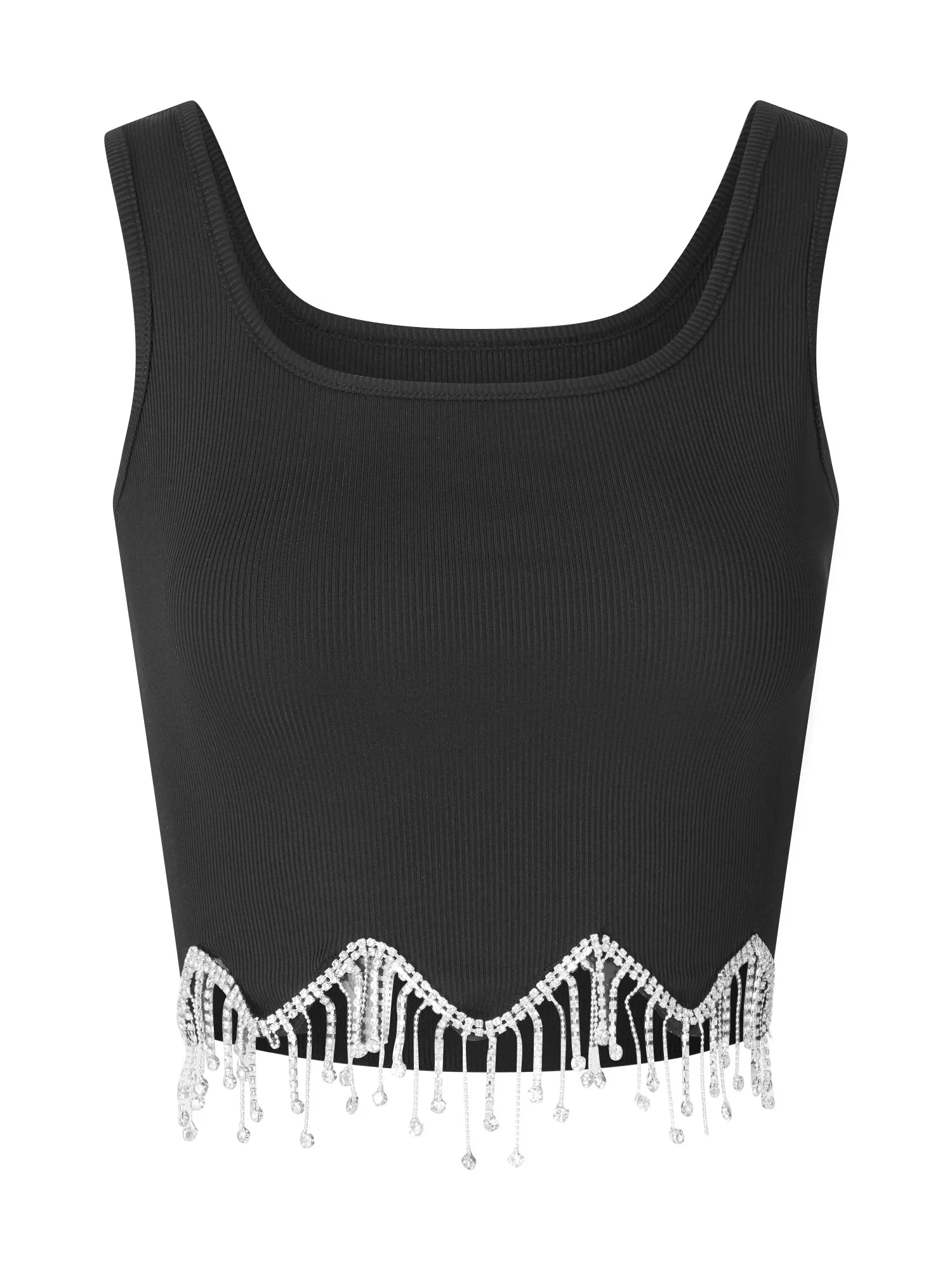 Perfect for parties, clubs, or casual outings, this camisole highlights your silhouette with its flattering square neck design and elegant backless style. The enchanting tassels and rhinestone embellishments add just the right amount of sparkle, making it a standout piece for any occasion.