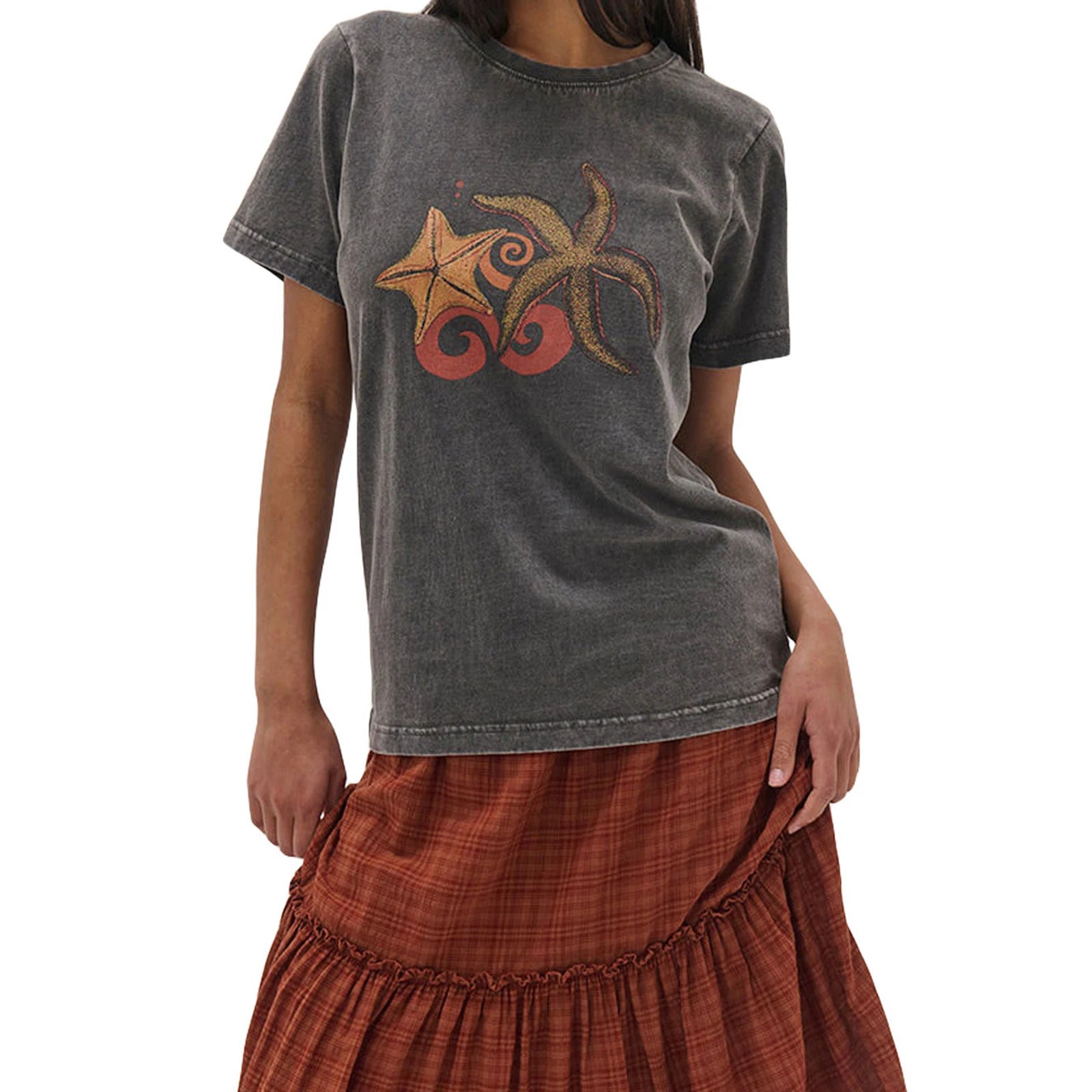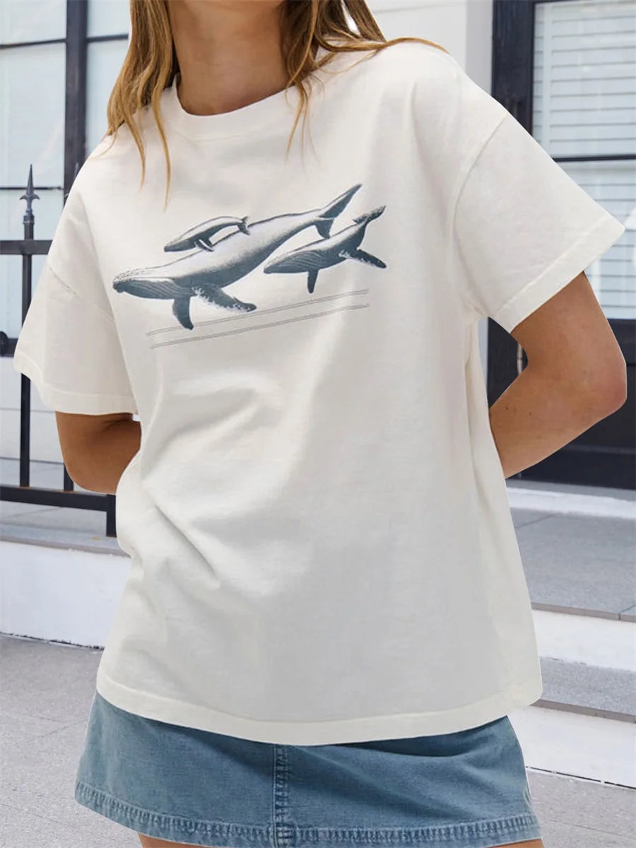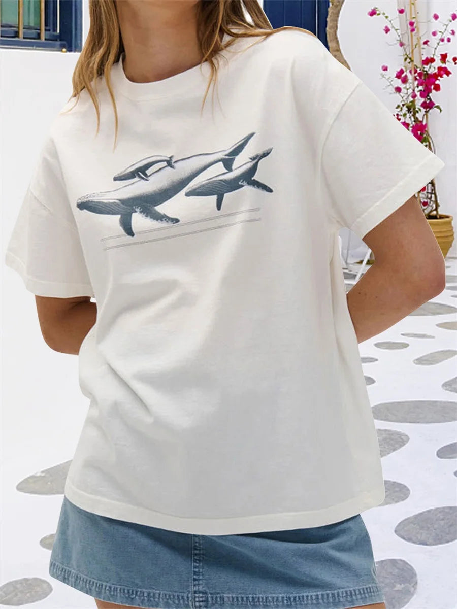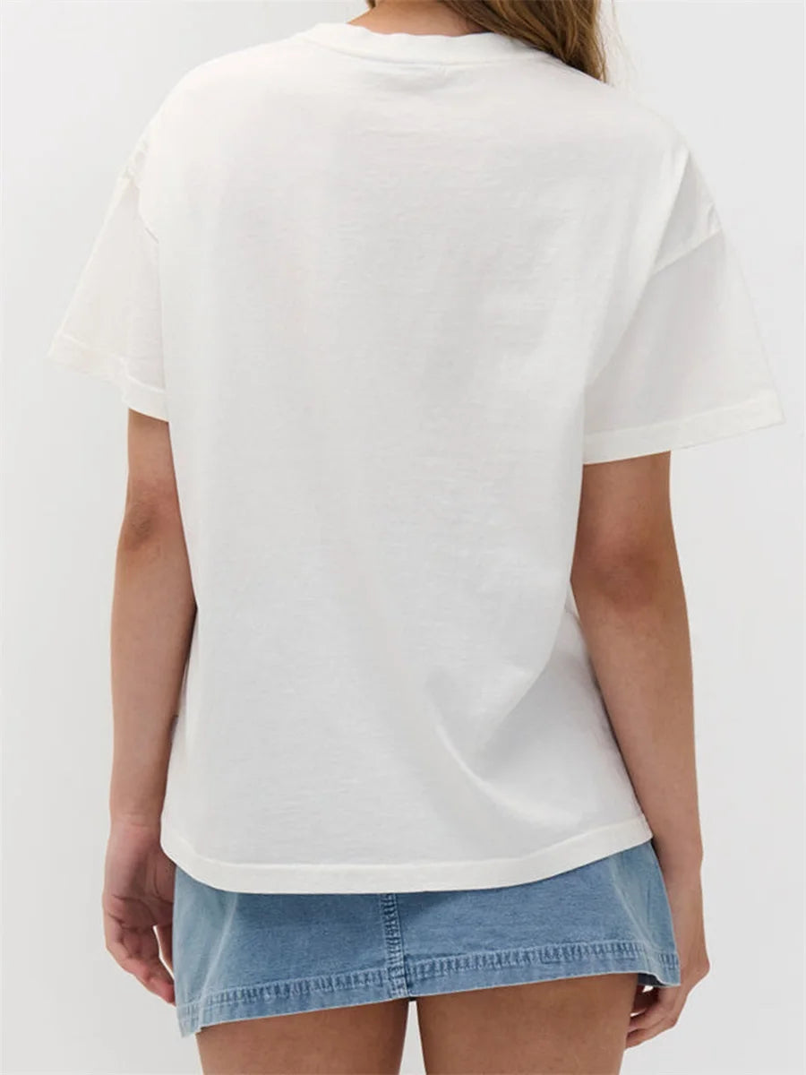 Crafted from a soft cotton blend, this top ensures breathability and ease, making it an ideal choice for warm weather. The relaxed fit allows for unrestricted movement, while the classic crew neck adds a timeless touch to your outfit.