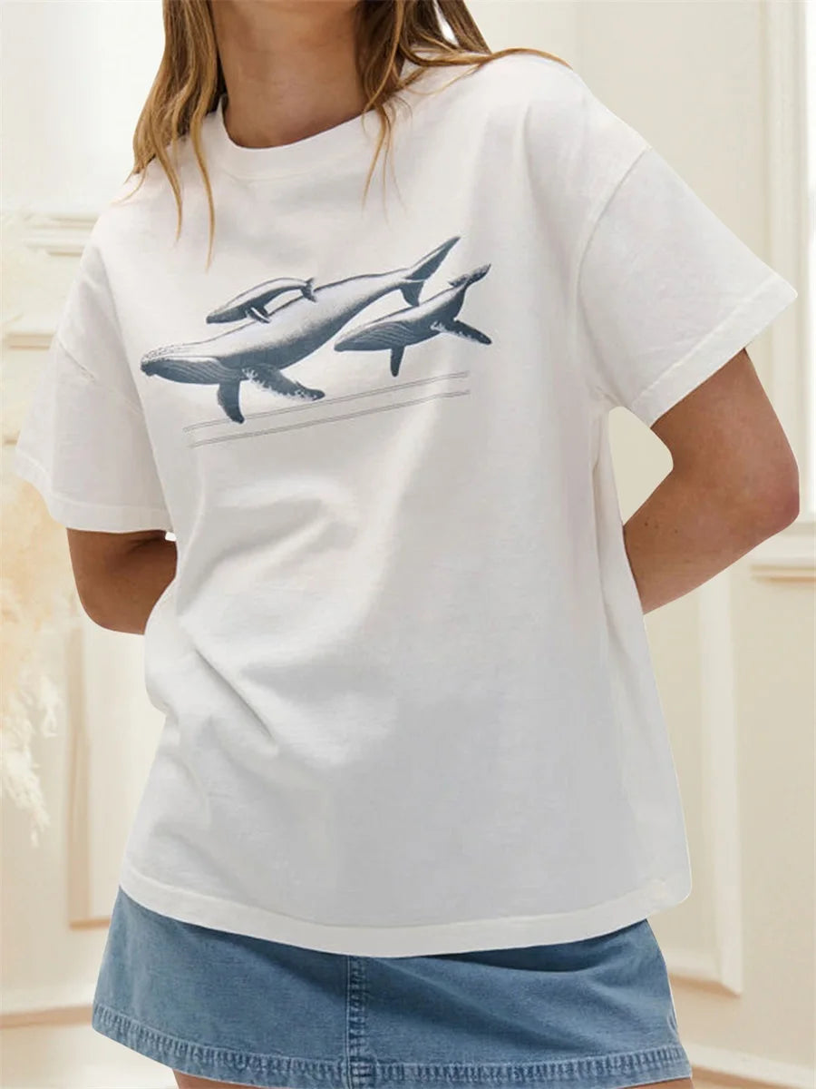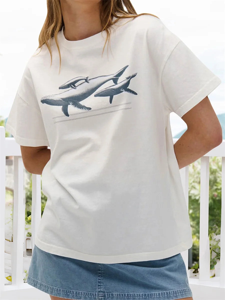 Women s Relaxed Fit Lightweight Cotton Blend Short Sleeve Tunic Top with Fun Underwater Print for Summer Style