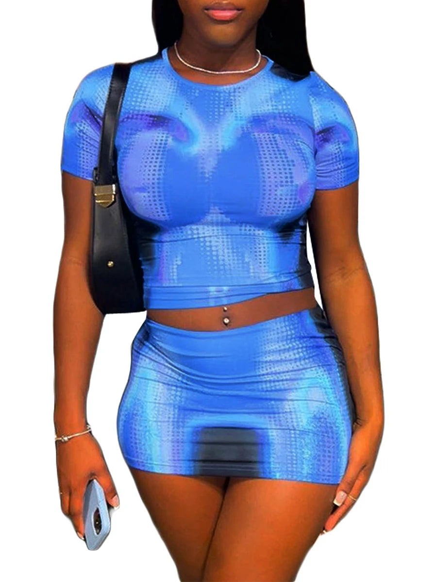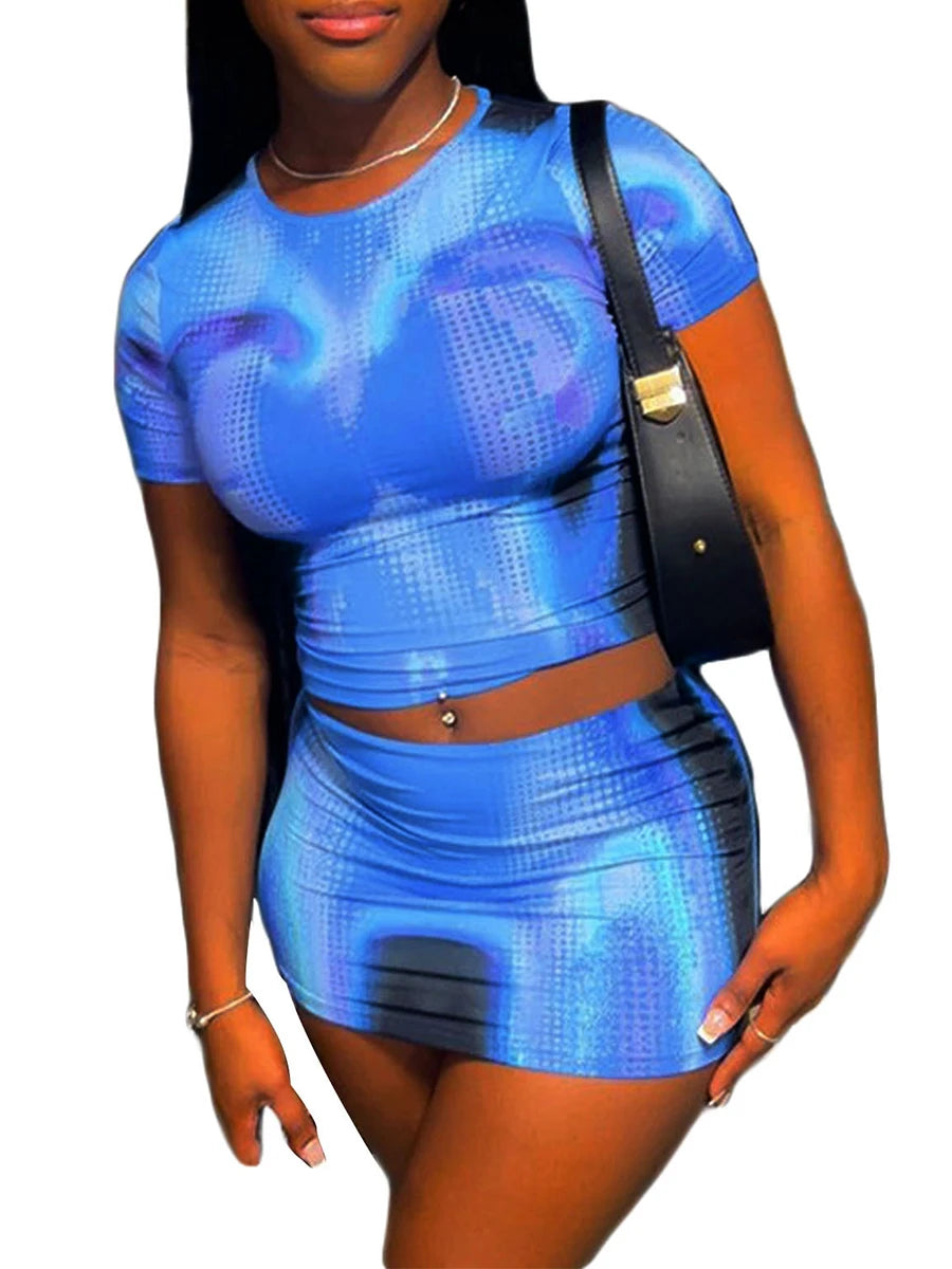 Women’s Summer 2Pcs Outfits Tie Dye Print T-Shirt Skirt
