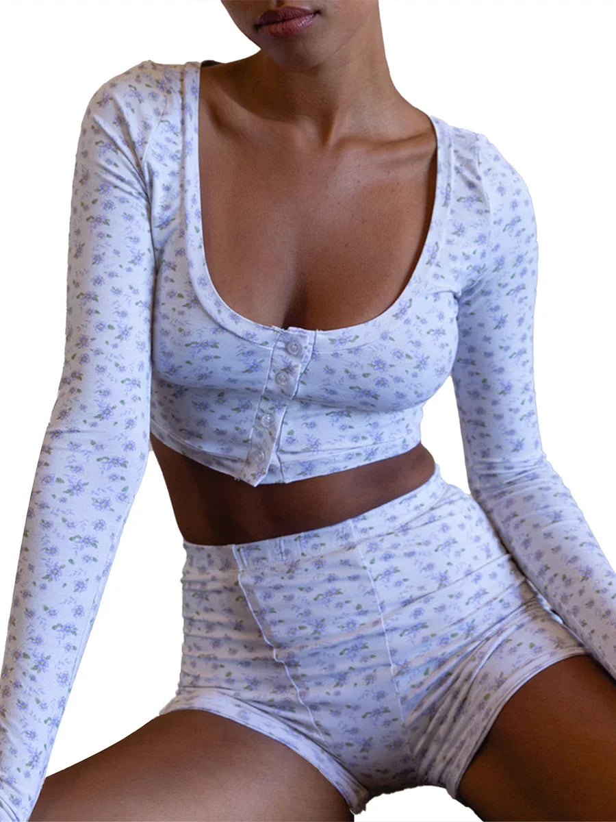 Crafted from high-quality polyester, this outfit features a vibrant flower print that adds a touch of femininity to your casual look. The short sleeve button top boasts a square collar, offering a chic silhouette that pairs beautifully with the high waist shorts.