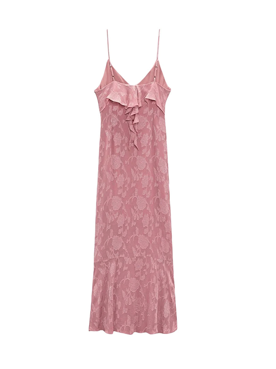 Designed with a V-neckline and adjustable shoulder straps, it offers a customizable fit that flatters every body type. The sleeveless silhouette keeps you cool during hot summer days, while delicate ruffled trims and tassels add a touch of playful charm. The ankle-length design elongates your legs, creating a graceful, slender silhouette, making it ideal for beach outings, garden parties, or a casual day out.